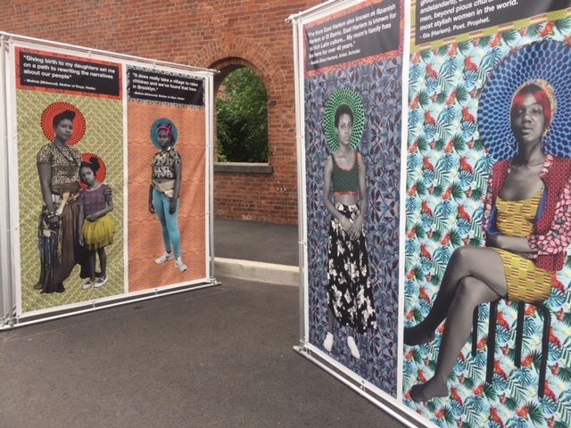 En ergens in Greenwich was een photo village waar deze krachtige zwarte vrouwen hun verhaal vertelde van afkomst en opgroeien in bepaalde zwarte wijken in NY. Gefotografeerd tegen achtergronden waarin ik Christie Haak meende te herkennen bekend van patronen en structuren in textiel/schilderijen en keramiek, maar weet niet of dat het idd was